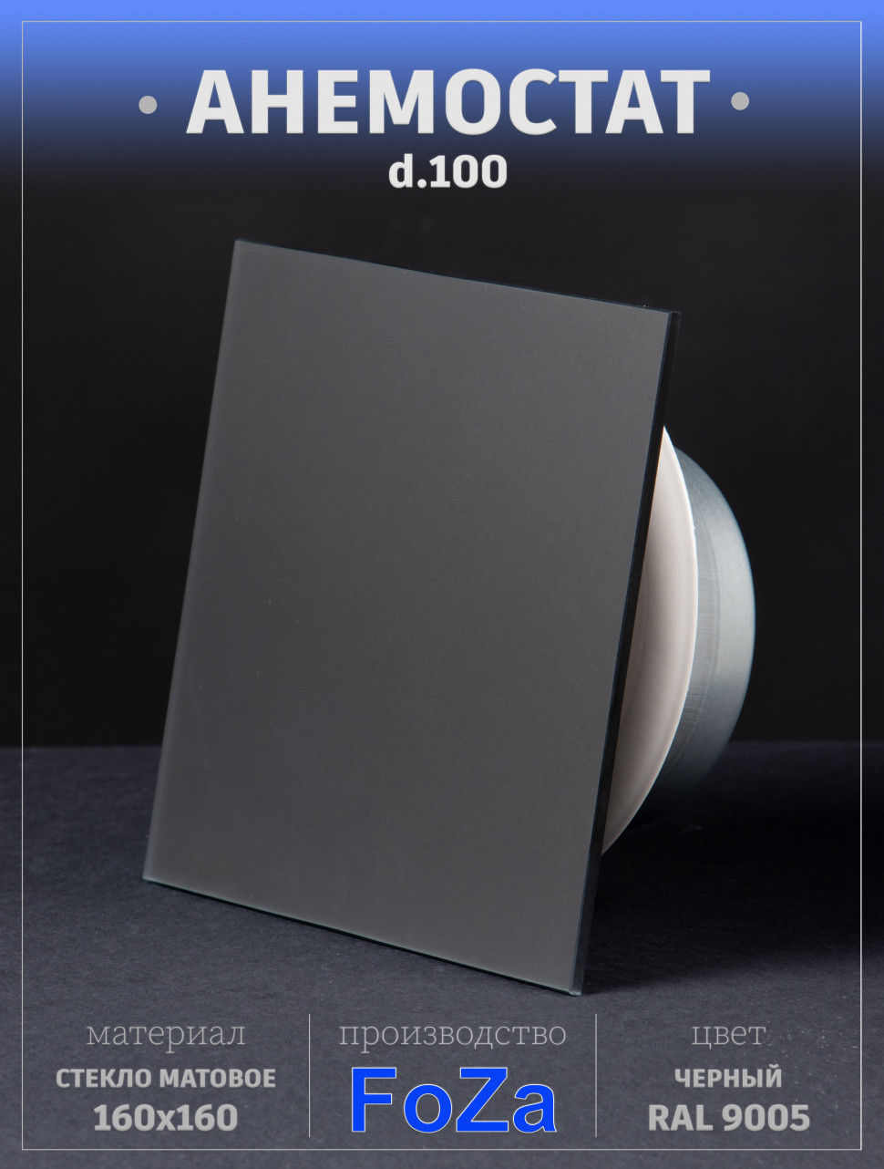 Анемостат со стеклянной внешней частью FOZA D 100 мм. Матовое стекло. Цвет Чёрный. RAL 9005 Квадратный