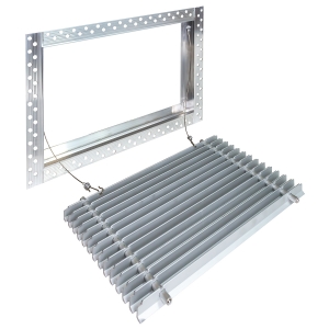 Данная решетка подходит для монтажа на любую поверхность под финишную отделку. Рамка и экран изготовлены из алюминия, опора экрана - из оцинкованной стали. Рама оснащена «полкой» 1,9 мм и рифлеными краями для большей адгезии финишного материала – шпатлевки, цемента. Решетка имеет съемную центральную часть с фиксированным углом наклона ламелей 15°. Она крепится к корпусу прочными металлическими тросиками, легко снимается для очистки и удобного обслуживания.