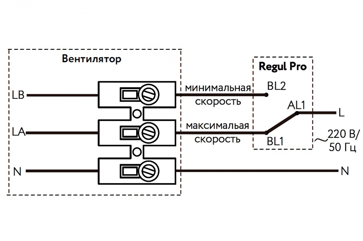 Краткое описание и назначение Regul Pro 2-х клавишный переключатель скоростей Regul Pro предназначен для управления двухскоростными вентиляторами. Позволяет в ручном режиме включать ии выключать вентилятор, устанавливать одну из двух скоростей.
