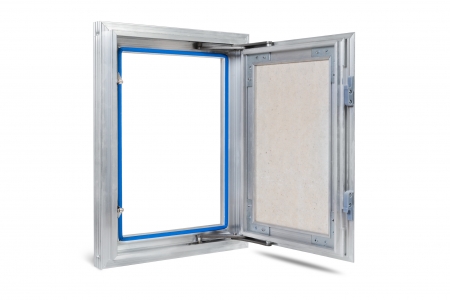 Рама люка для ревизии «Триумф» выполнена из алюминиевого профиля коробчатой формы и Г-образной в сечении для максимальной жесткости и удобства монтажа. Дверца люка изготавливается и алюминиевого профиля Т-образной формы, переменного сечения, с выраженными ребрами жесткости, что делает её конструкцию более жесткой в отличие от своих предшественников. Так как немаловажно исключить перекосы конструкции дверцы, чтобы не допустить деформации наклеенных на нее материалов. В отличие от наших конкурентов, толщина стенок алюминиевого профиля у нас по-прежнему 2 мм и более.