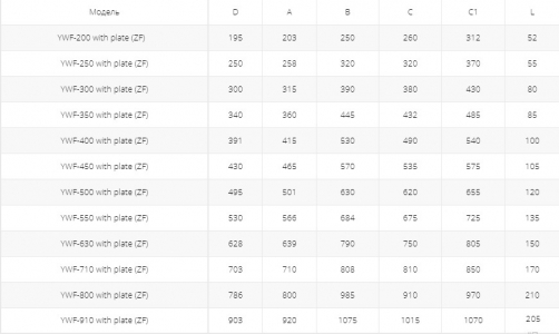 где: YWF – серия осевого вентилятора с защитной решеткой;