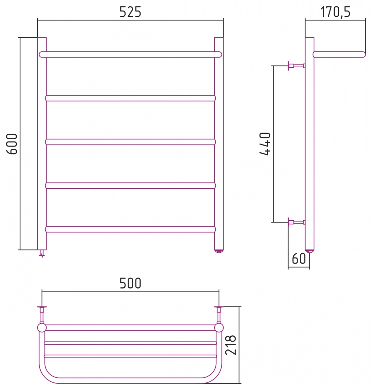 Полотенцесушитель электрический Стилье Формат №30 600x500