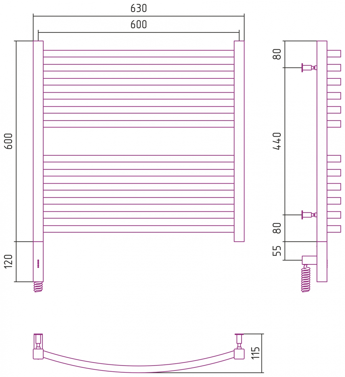 Полотенцесушитель электрический Сунержа Аркус 3.0 800x600