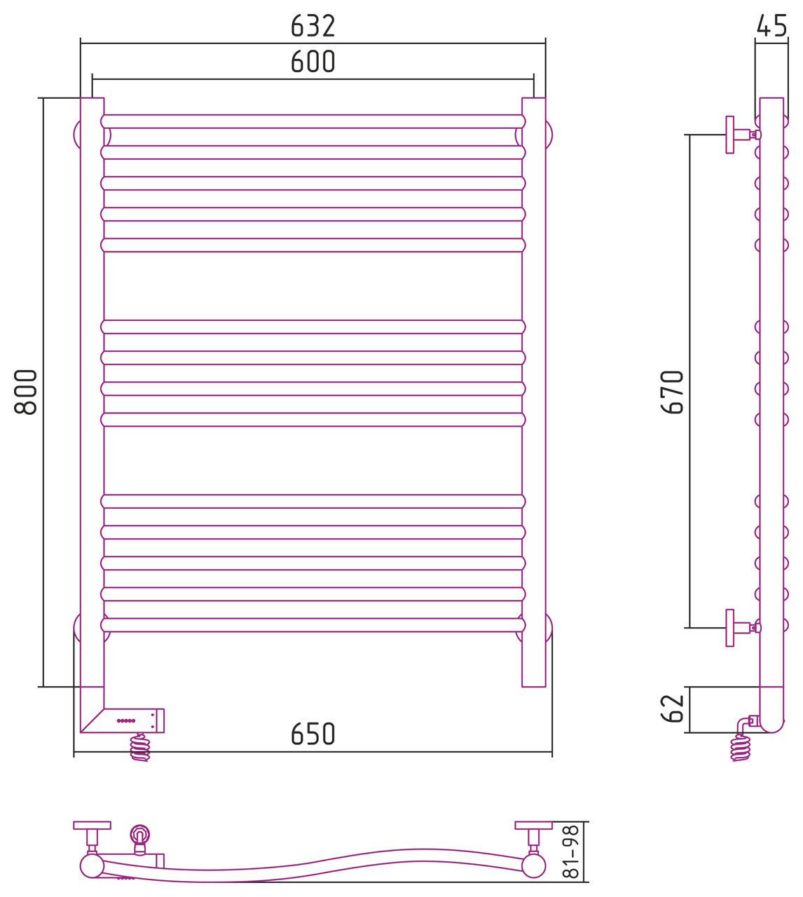 Внешние габариты (высота х ширина х глубина)(мм) : 800x650x81-98