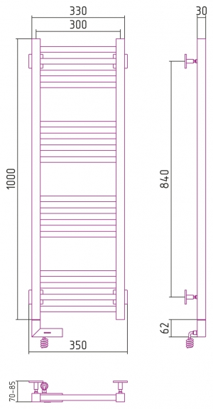Внешние габариты (высота х ширина х глубина)(мм) : 1062x350x70-85