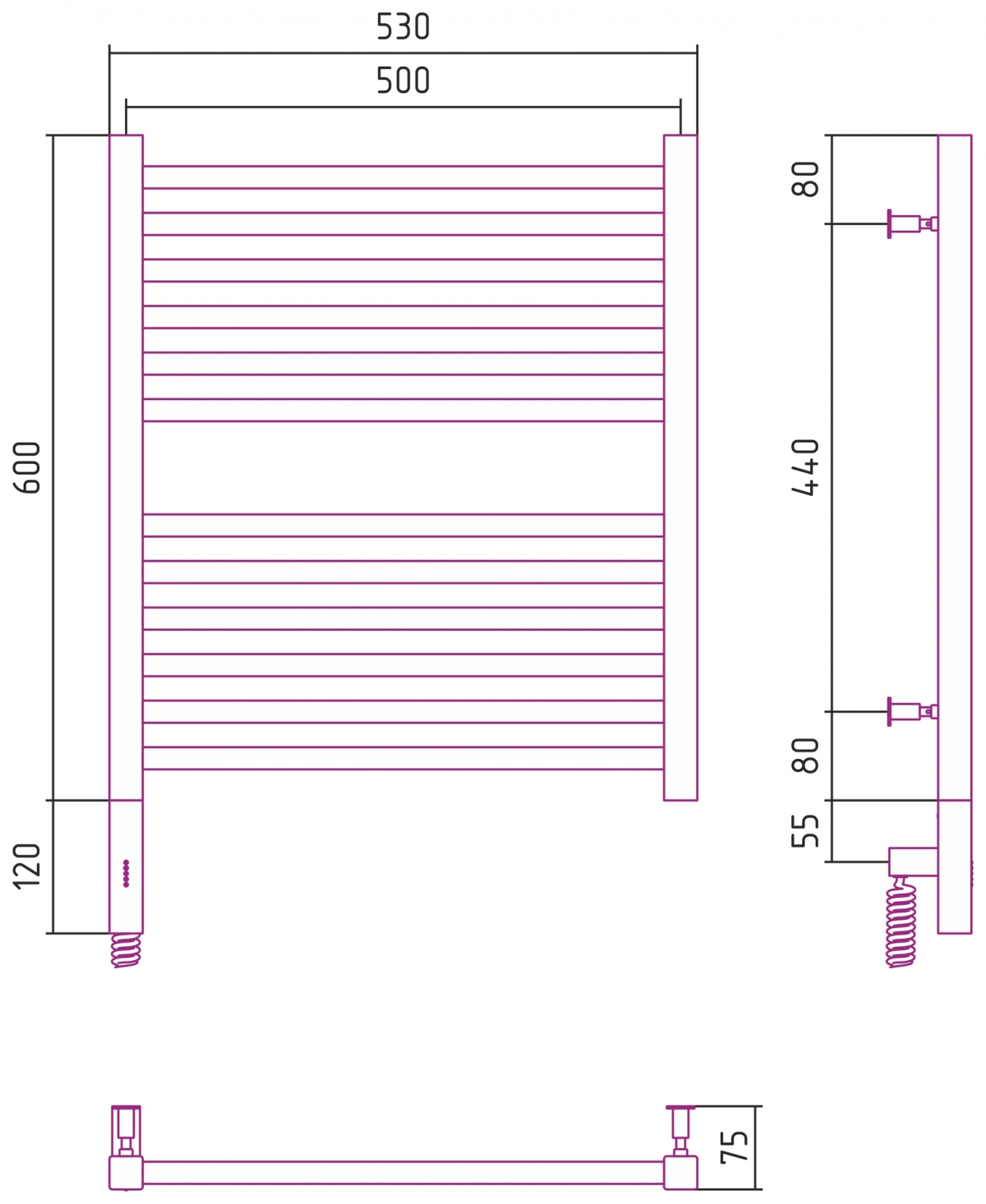 Полотенцесушитель электрический Сунержа Модус 3.0 600x500