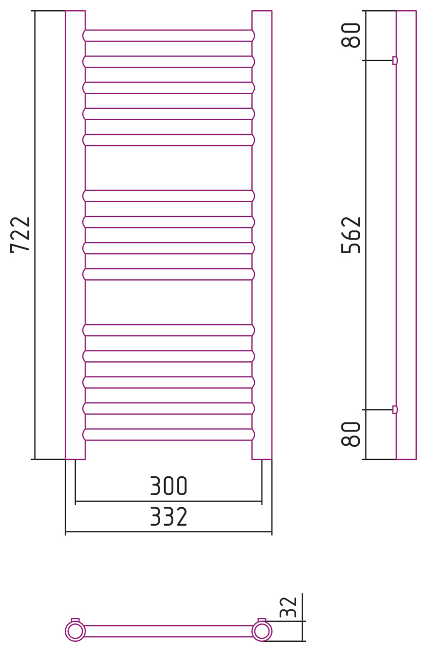 Размер полотенцесушителя:800х300