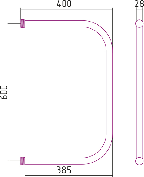 Полотенцесушитель водяной Стилье П-образный 600x400 резьба-cгон 1"