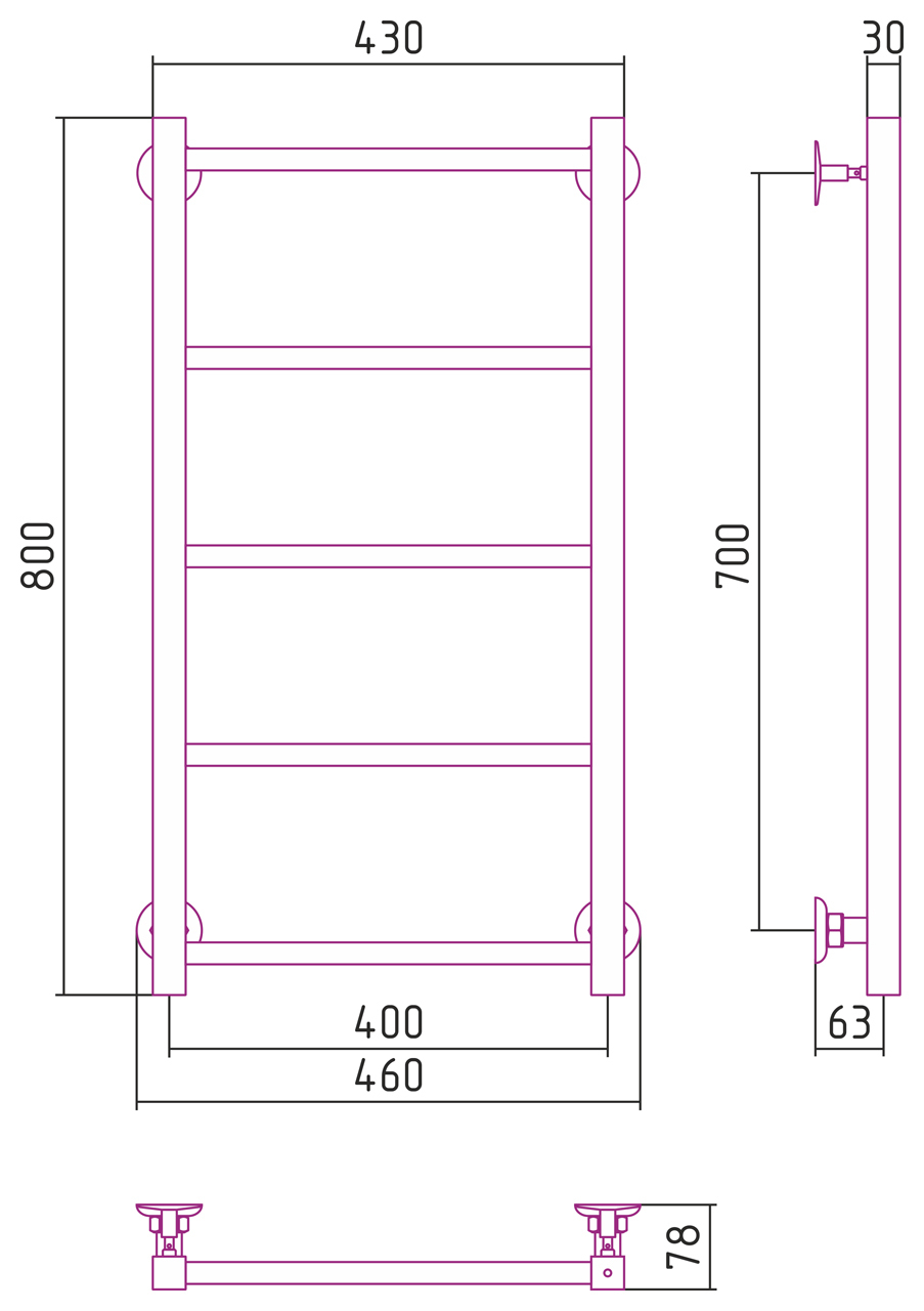 Полотенцесушитель водяной Стилье Версия-КН 800x400