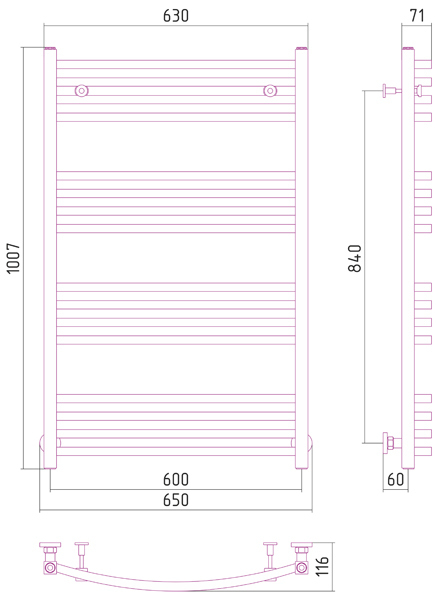 Внешние габариты (высота х ширина х глубина) (мм) ; 1007 х 650 х 116