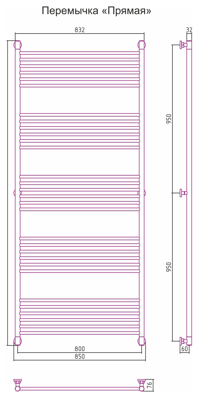 Полотенцесушитель водяной Сунержа Богема+ 1900x800