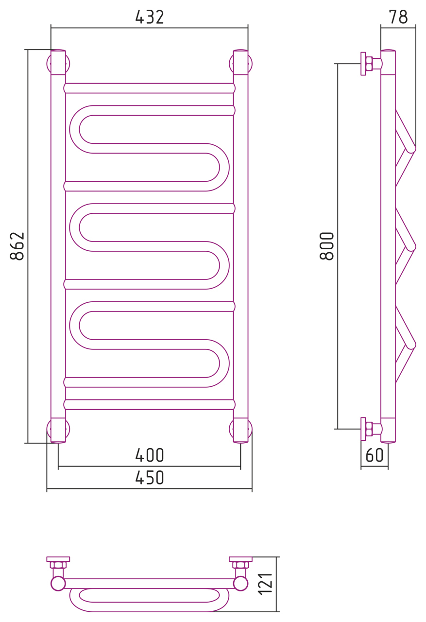 Полотенцесушитель водяной Сунержа Элегия+ 800x400