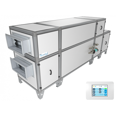 • Приточно-вытяжная установка напольного типа с противоточным пластинчатым рекуператором, системой защиты от замерзания, эффективный рабочий температурный диапазон до -35°С).