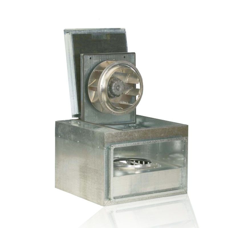 Электродвигатель и рабочее колесо установлены на откидной крышке, что упрощает доступ к ним для чистки и обслуживания.