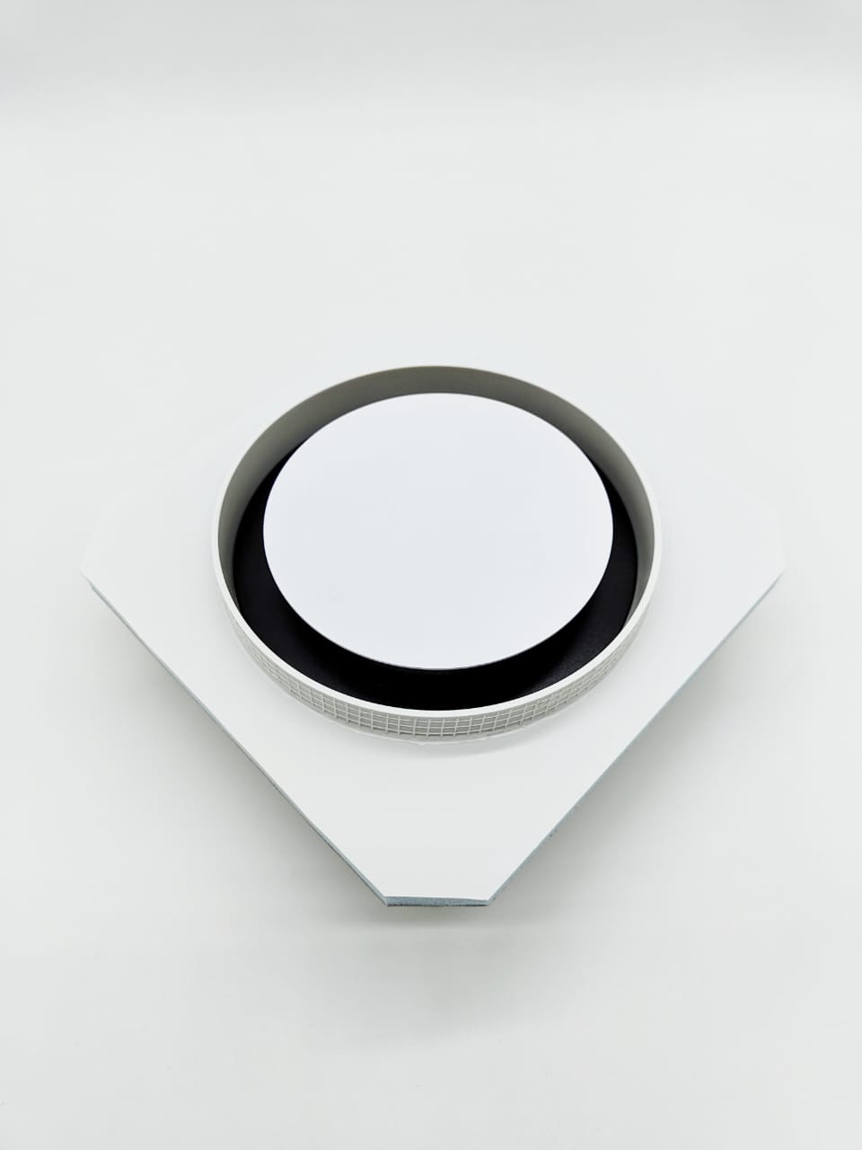 Так же диффузор состоит из металлической заслонкой, которой можно регулировать поток воздуха, либо полностью перекрыть его. К заслонке с помощью магнитов крепится декоративная круглая панелька, которую можно покрасить в цвет потолка. Так же по ободку диффузора имеется молярная сетка, для надёжной фиксации шпаклёвки. Наши диффузоры оснащены москитной сеточкой, которая препятствует попаданию насекомых в помещение.