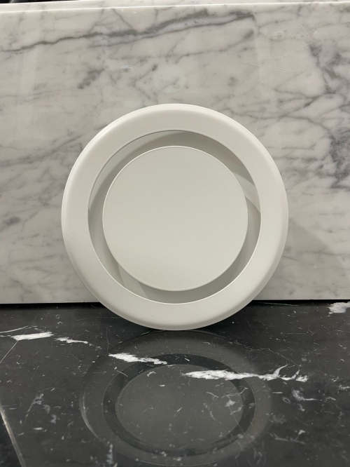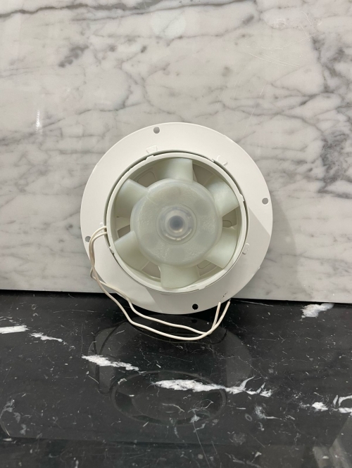 • Вентилятор белый металлический накладного типа.