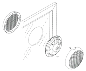 При настенной установке необходимо закрепить внутреннюю часть вентилятора на стене (в заранее подготовленное отверстие) при помощи четырёх шурупов.